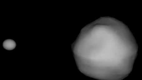 • 65803 Didymos asteroid and its moonlet binary. Credits: Naidu et al., AIDA Workshop, 2016